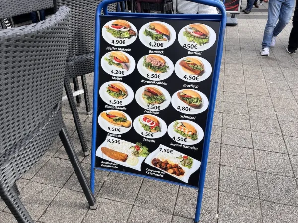 fief Euro föfftig för en Backfischbröök, dat sünd ja elf mark!