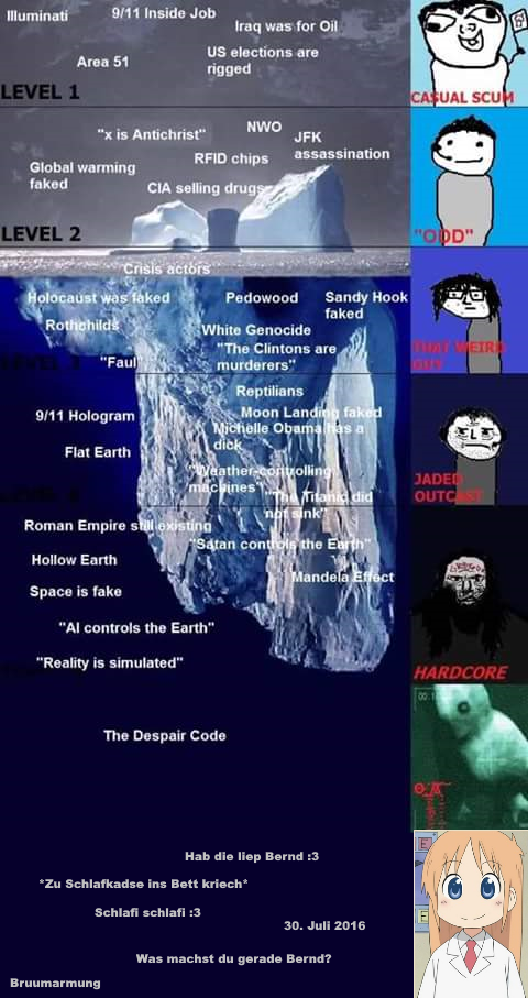 Gewitter wurden von der CIA erfunden um von Weltraumschlachten abzulenken. Klingt komisch ist aber so. Außerdem weiß Bernd das Helmut mit Vornamen Karl Heinz heißt.