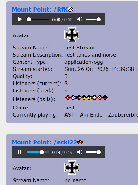 Hab den Mountpoint einmal gekillt. Der Ström über den Mountpoint KidCharlemagne scheint zu laufen.