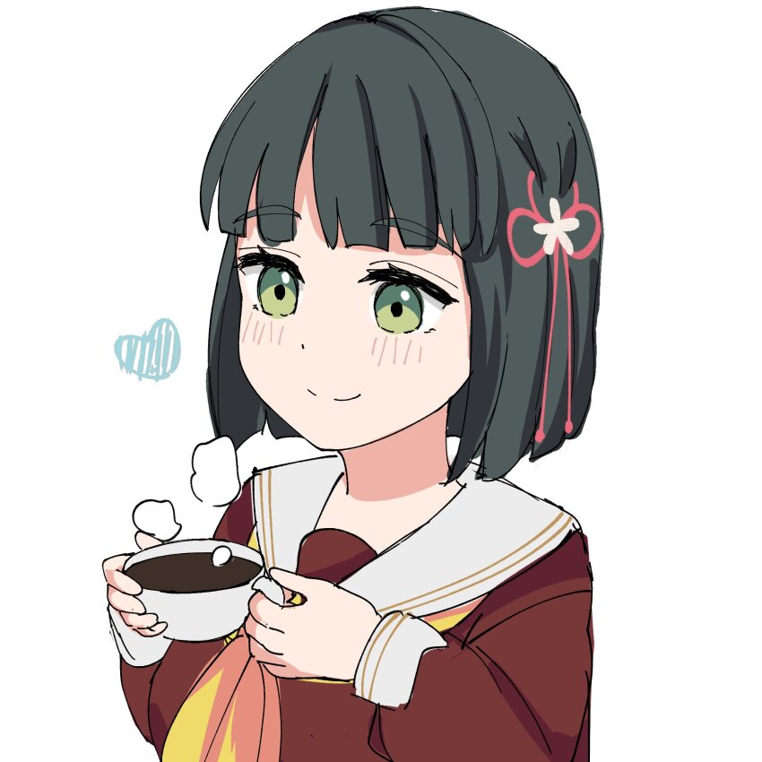 >dass er seinen kochend heißen und leckeren Schwarztee hat