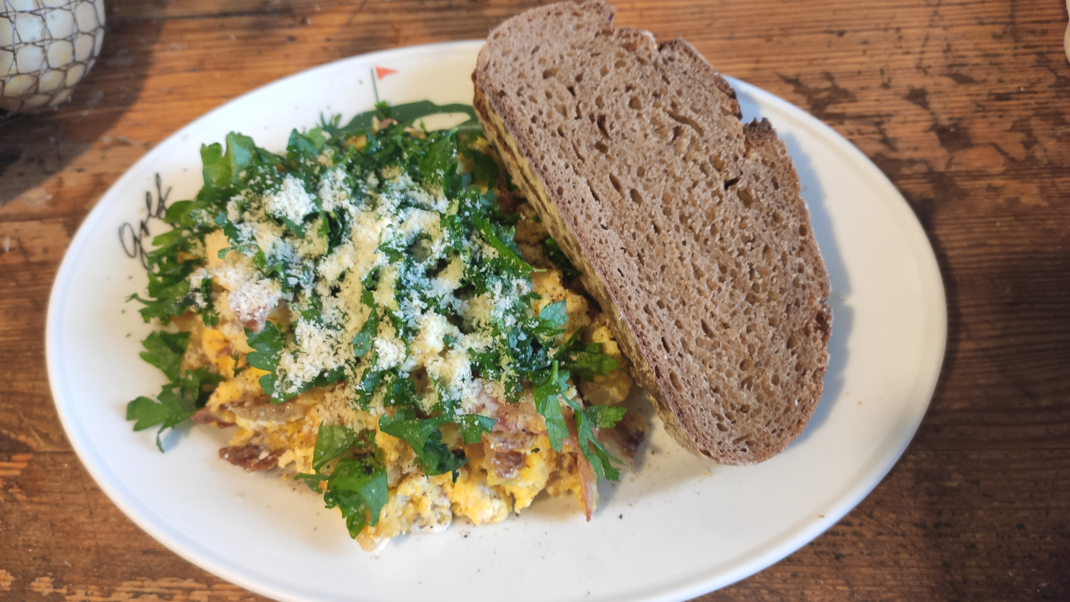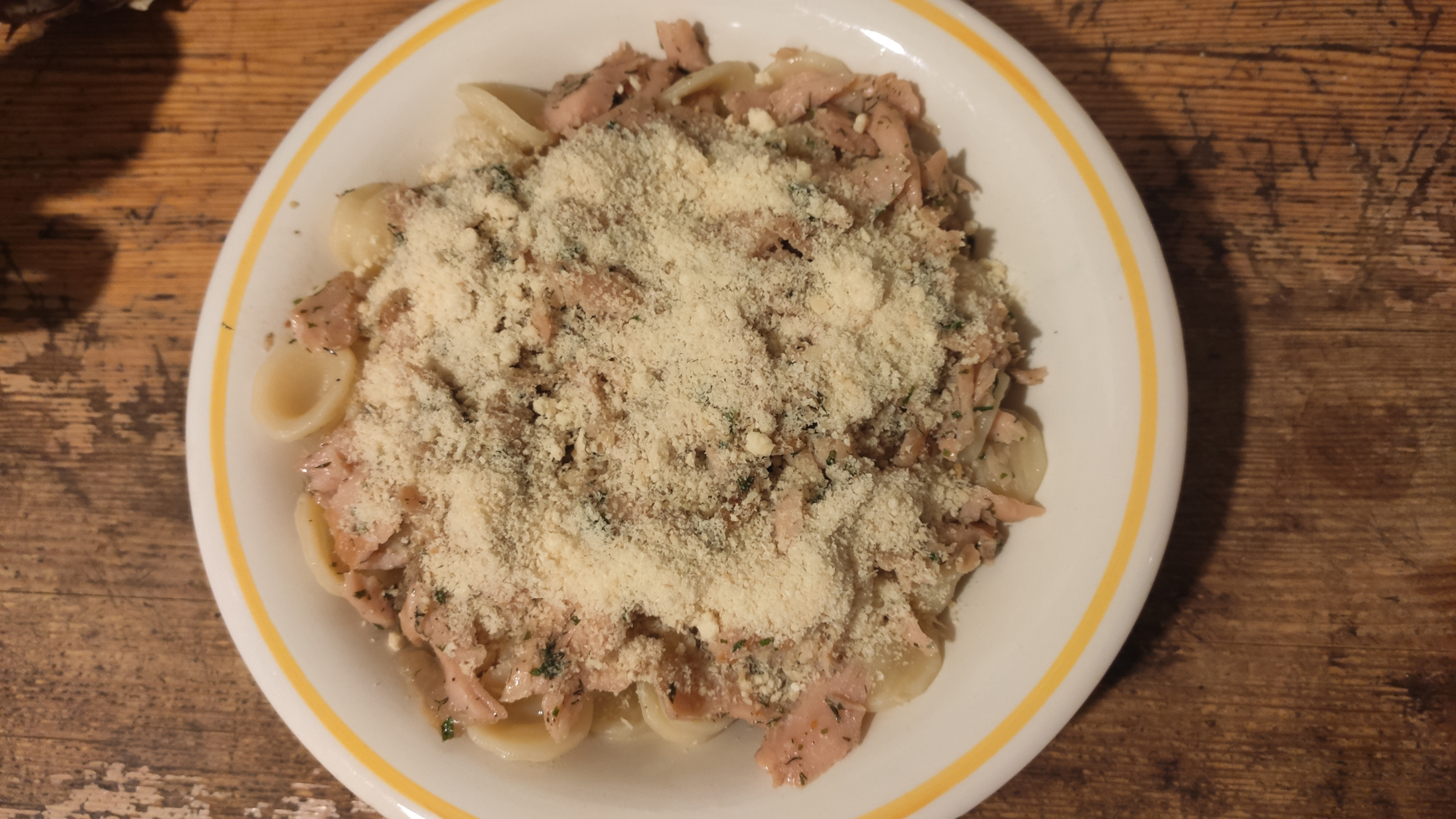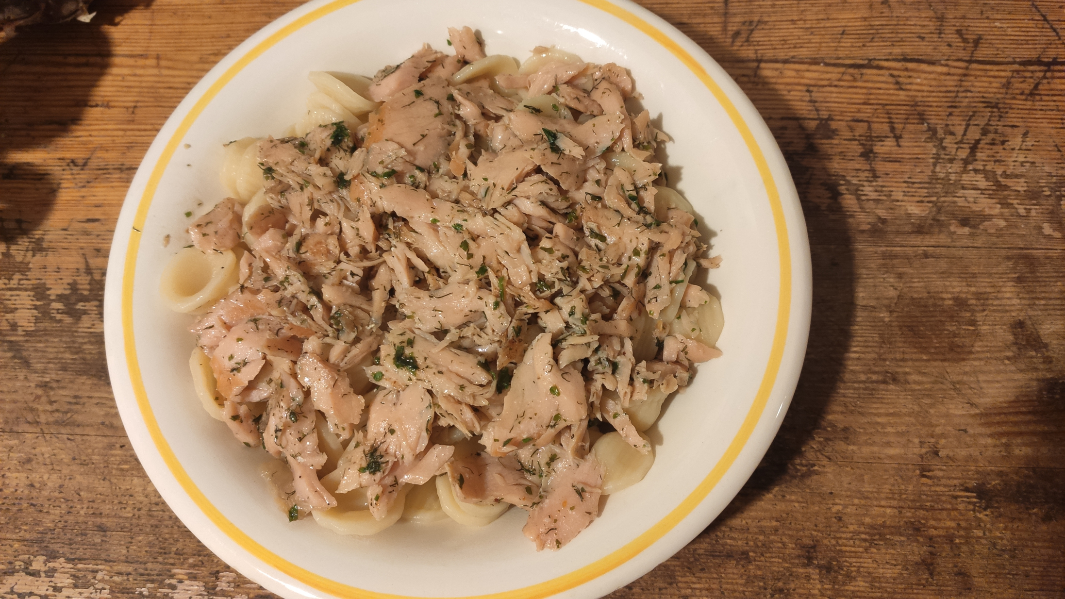 Zeit für Experimente: Da Bernd für seinen Kimchi-Bedarf immer noch keine zufriedenstellende Lösung gefunden hat (selbst machen aufwendig, bestellen doof, kaufen teuer), probiert er heute die deutsche Variante auf Sauerkrautbasis. Kimchi ist in der Regel fermentierter Chinakohl mit Sachen drin, und Sauerkraut ist fermentierter Weißkohl, fehlen also nur die Sachen drin. Bernd probiert es heute mit zwei kleinen Zwiebeln, Knoblauch, zwei Esslöffeln scharfem Ajvar, etwas Salz und einer Prise Zucker, die Zutaten hat er so ähnlich im Zwischennetz gesehen. Leider hat Bernd nur halbherzig für dieses Experiment eingekauft, ansonsten hätte er noch Kimchi-Dinge wie Ingwer oder Chilipulver kaufen können. Der scharfe Ajvar sollte das fehlende Chilipulver aber kompensieren können. Überhaupt macht Bernd sich Sorgen, dass das zu hartkern sein könnte mit den rohen Zwiebeln drin. Eigentlich wollte er die anbraten, aber Rezept sagt roh, also roh es ist. Sollte es wirklich zu scharf sein, könnte man das für die Zukunft mit normalem statt scharfem Ajvar regulieren.