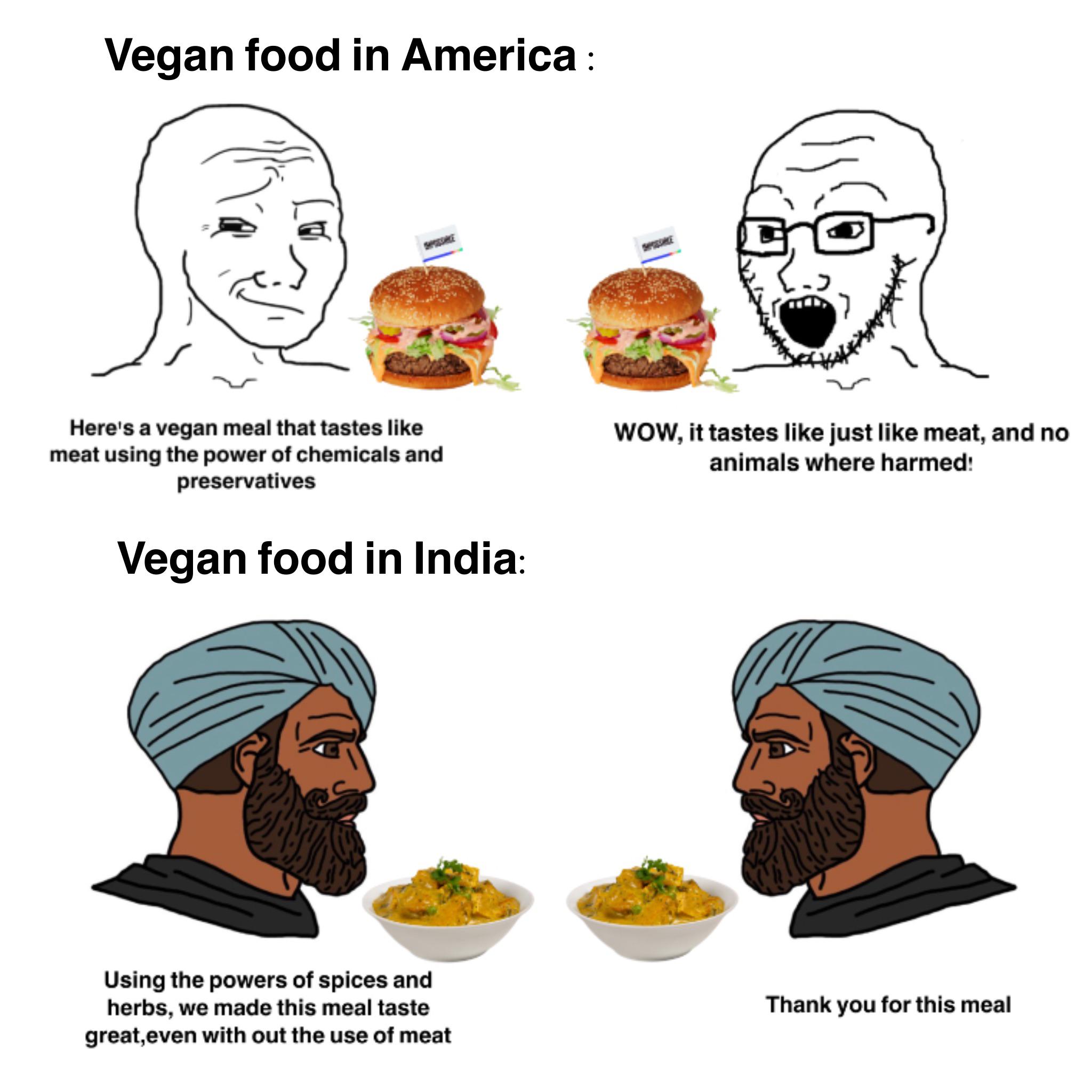 Ja, das ist häufig die Hauptzutat. Aber wie viele Gerichte kommen wirklich ohne Fleisch aus? Nudeln, Kartoffeln, Schupfnufeln, Knödel, Spätzle, all das wird aus den von dir genannten Kohlenhydraten gemacht. Und was ist das? Beilage. Bei Bernd zuhause gabs dann ne Frikadelle dazu. Oder Schnitzel. Wurst. Leberkäs. Kassler. Braten. Hackbraten. Oder Fleisch drin, in Form von Maultaschen. In der (Sahne-)Soße ist dann Fleisch drin. Frikassee. Bolognese. Carbonara. Zum Frühstück gab's Brot mit Salami, Mortadella, Fleischwurst und was weiß ich nicht alles. Als Kind habe ich 3-4 mal pro Tag Fleisch bekommen, und die Eltern essen heute noch so. Wenn's mal ein vegetarisches Essen in die Schule mit gab, war's ein Nutellabrot.