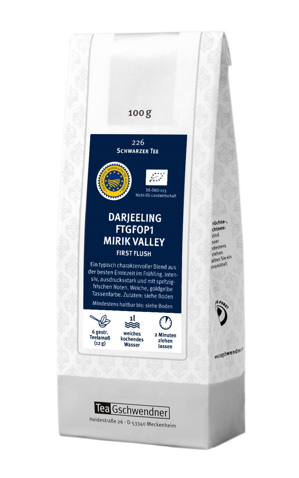 Meine Mutter hatte einen GG (Gschwendner-Gutschein) im Wert von 20 €. Was hat sie sich gekauft? Eine Tasse mit Bootsmotiv, keine Ahnung welche von beiden. Musste sogar noch mehr als einen Zehner drauflegen. Aber zum Thema Tee: Sie hat bildrelatierte Probepackung dazu bekommen und mir ungeöffnet gegeben. War ganz lecker und für einen Früchtetee auch nicht sauer, ich werde mir allerdings nicht mehr davon besorgen.