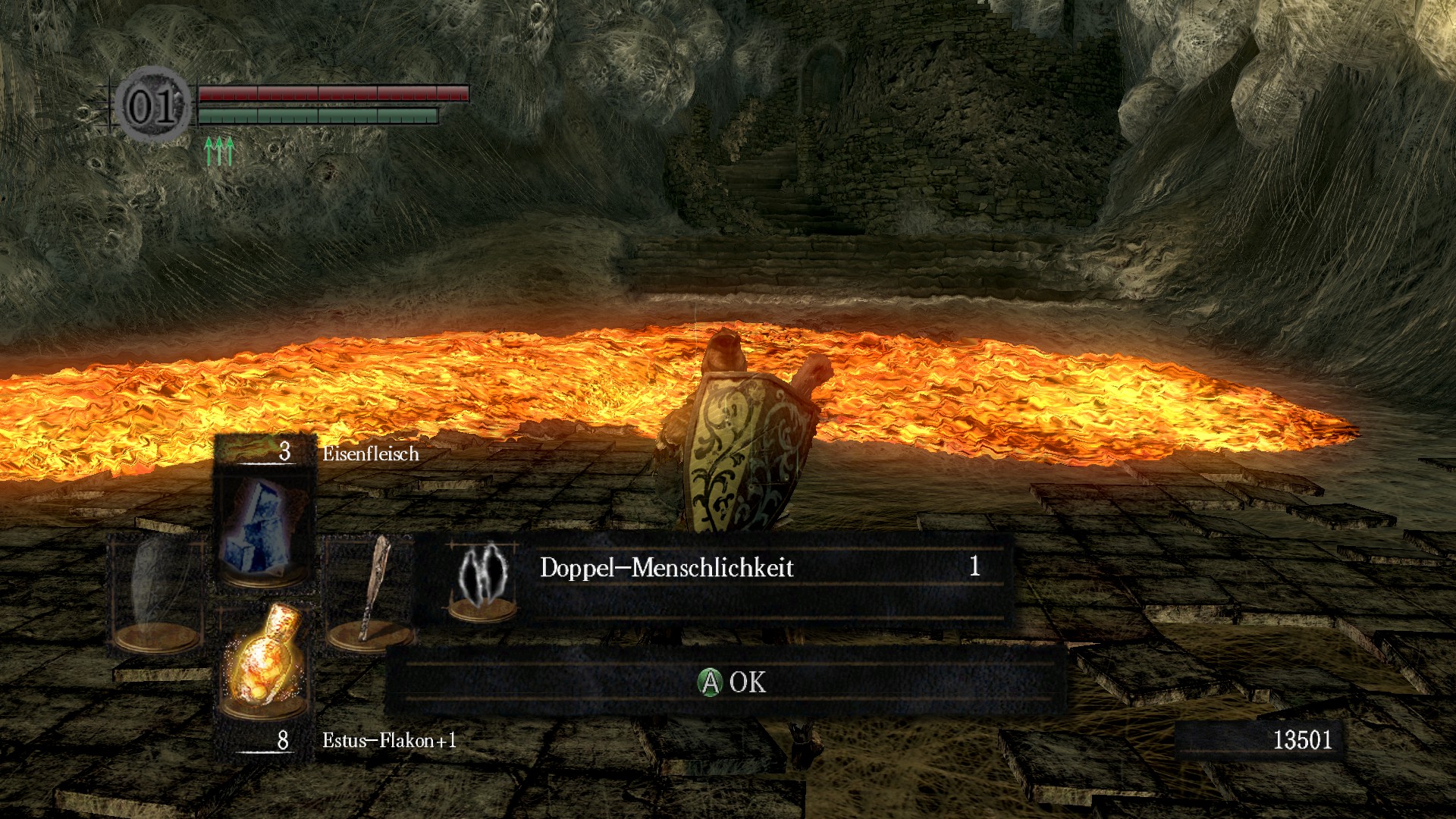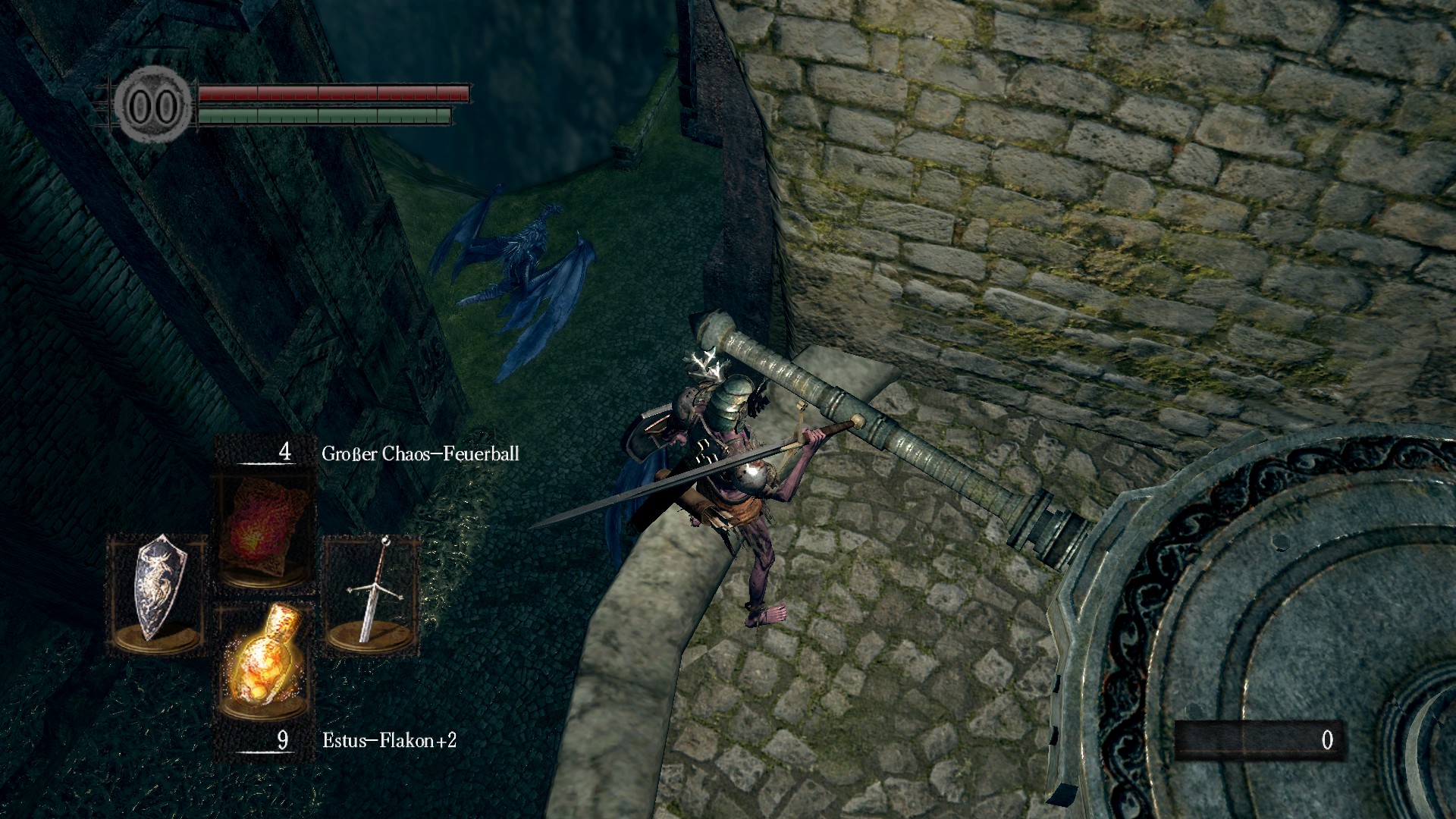 Teil 1 hat für Bernd auf jeden Fall die immersivste (?) und tollste Spielwelt, die quasi offen ist, all die Abkürzungen und wie die Orte teils über Kreuz miteinander verbunden sind, das hat Bernd sehr gefallen. Gegen Ende wird's ein bisschen Mau, die Archive sind unnötig in die Länge gezogen und Izalith ist wirklich Grütze. Und Tomb of the Giants ist eine Frechheit. Dazu Sachen wie die kryptische Humanity, ein sehr kompliziertes Waffensystem und die begrenzte Anzahl, wie oft man Zauber wirken kann. Keine Möglichkeit, Sachen zu verkaufen (außer bei Frampt) und Teleportation erst ab der Hälftedes Spiels. Naja. Jammern auf hohem Niveau, stimmt, aber Bernd kam, wie gesagt, von Teil 3.