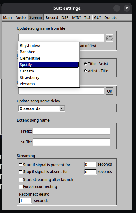 Butt startet bei mir gerade nur noch mit einem schwarzen Fenster, aber ich glaube, es konnte die Metadaten von Spotify lesen. Unter Fedora aber.