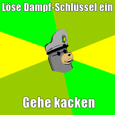 Hier noch einmal die Regeln: Jeden Tag öffnet sich ein Türchen mit einem Dampf-Spielekot darin. Um das ganze interessanter zu machen und um simples abfarmen zu unterbinden, ist der Code mit einem kleinen Rätsel verschlüsselt. Ich habe diese Codes über und freue mich, wenn sich jemand daran erfreut. Freu dich einfach mit mir, Bernd/Ernst. Nur eine Bitte: Bedanke dich für jedes eingelöste Spiel, damit ich das abhaken kann. Es wird nichts weggeworfen, alte Codes werden wie immer gesammelt und als Hilfslieferung über dem Kohl abgeworfen.
