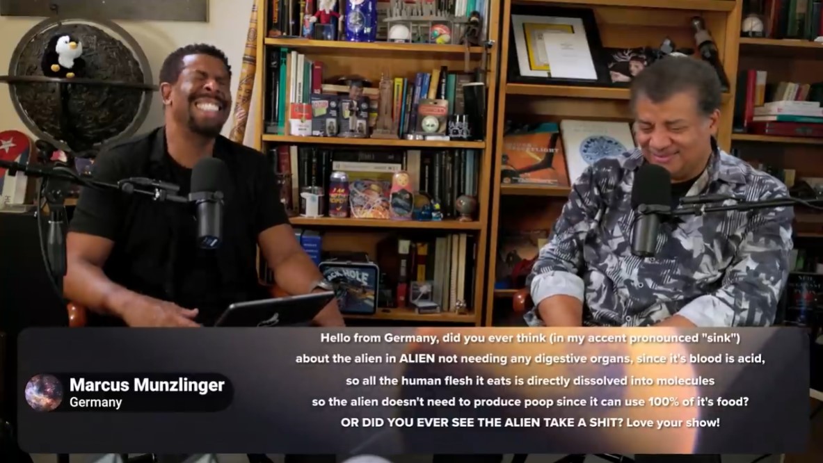 >Schaue Sternengespräch, eine DuRöhren-Populärwissenschafts-Sendung >Ein Deutscher stellt eine Frage >es geht um Scheiße >er heißt auch noch Munzlinger Das ist zu viel für Bernd, er geht jetzt ins Bett.