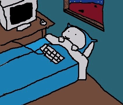 Bernd hatte wieder einen Sextraum... zumindest versuchte er, diesen stetig dahinzuentwickeln, wurde am Ende aber trotzdem wieder schwanzblockiert. In dem Traum war Bernd mit einer Mulle in einem großen Gebäude, wo Party oder sowas war. Bernd wollte ficken. Sie erzählte ihm, dass man in einem der oberen Stockwerke irgendwelche Chilloutkrams hat, wo man auch rummachen kann. Dabei kam Bernd an einem Parkdeck vorbei, wo er einen alten, mittlerweile geschiedenen Freund traf, der mit einer Stimme sprach, die ganz anders als seine echte war und ihm erzählte, dass er einfach rumreist und Sachen macht auf die er Bock hat. Die Mulle führte Bernd dann weiter rum und erzählte ihm wie vorsichtig man sein muss und nicht die anderen Leute stören und lauter so unsexy Krams; sie war von der Art irgendwie wie Bernds Ex. Leider hatte sie unter ihrer Jacke eine Art gestrickten türkisenen Monokini und Hotpants. Man müsste nur die schmalen Stoffbahnen beiseite schieben, um alles freizulegen. Dann war da noch irgendwie Kinderanimation wo Leute in diesen aufblasbaren Dinosaurierkostümen irgendwelche Possen verantstalteten. Zum Schuss ist Bernd dann nie gekommen; nicht mal einen Nippel hat er gesehen. Jetzt ist Bernd sehr unbefriedigt aufgewacht. Er kann sich nicht mal genau dran erinnern, wie die Mulle aussah, außer dass sie mutmaßlich kurzes dunkles Haar hatte. Normalerweise bei solchen Fällen sucht er sich irgendwas, was dem Thema entspricht und fappiert dann darauf, aber hierzu fällt ihm nichts ein, was auch nur irgendwie an irgendwas aus dem Traum rankommt. Über 9000ms in MSPaint noch als Illustrastion ihrer Kleidung dabei.