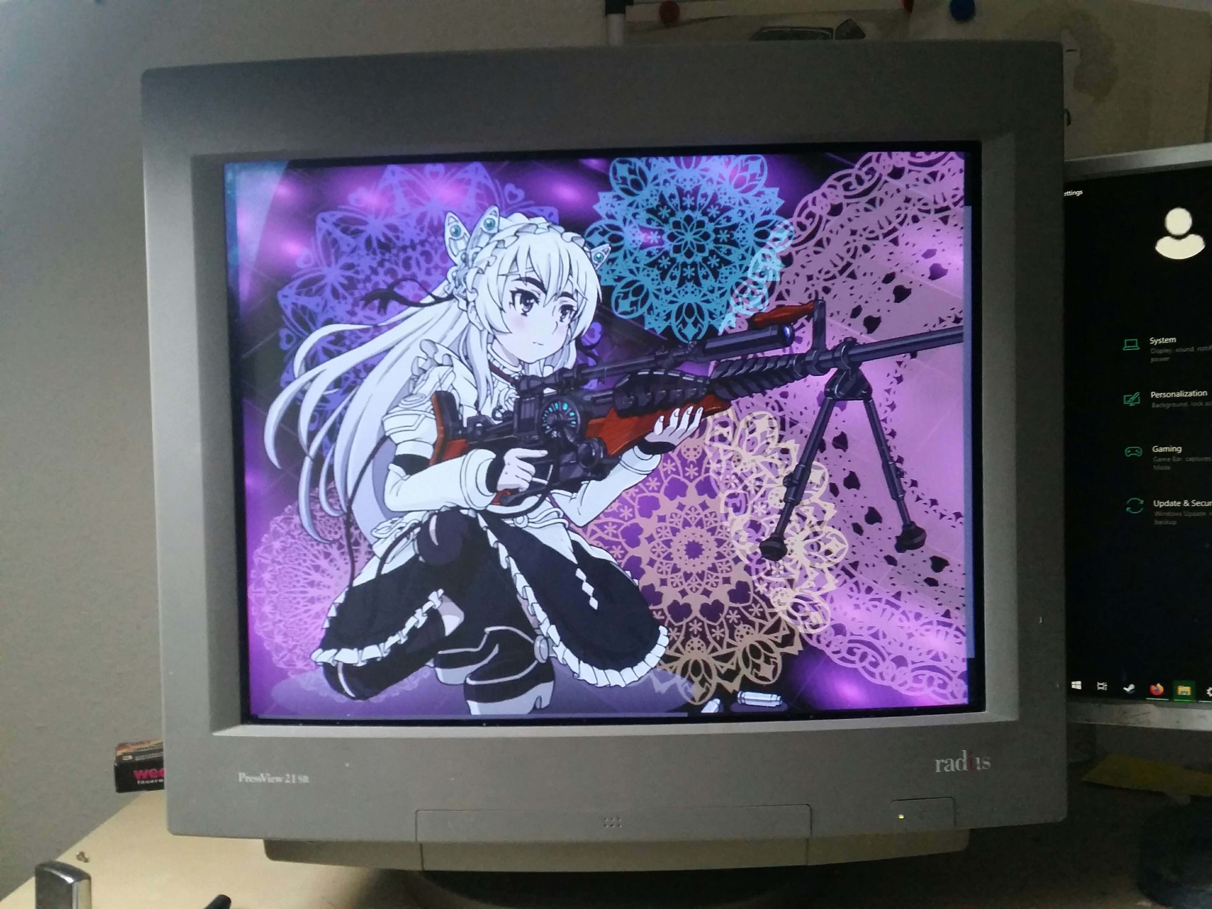 Ja, am Aldi-PC von 1998, der offline immer noch gut als Schreibmaschine mit Word 97 funzt. Auch für Tiberian Sun, Siedler II, X-Com Apocalypse, Halflife und so Sachen. Allerdings ist die Leuchtschicht oder der Elektronenstrahl nun so matt, dass ich Kontrast und Helligkeit weit hochregeln muss und Schriften zum Rand hin verschwimmen.