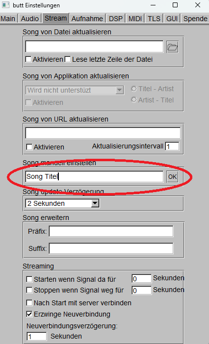 Für ecki, um zu zeigen, wie man manuell den Liedtitel einstellt