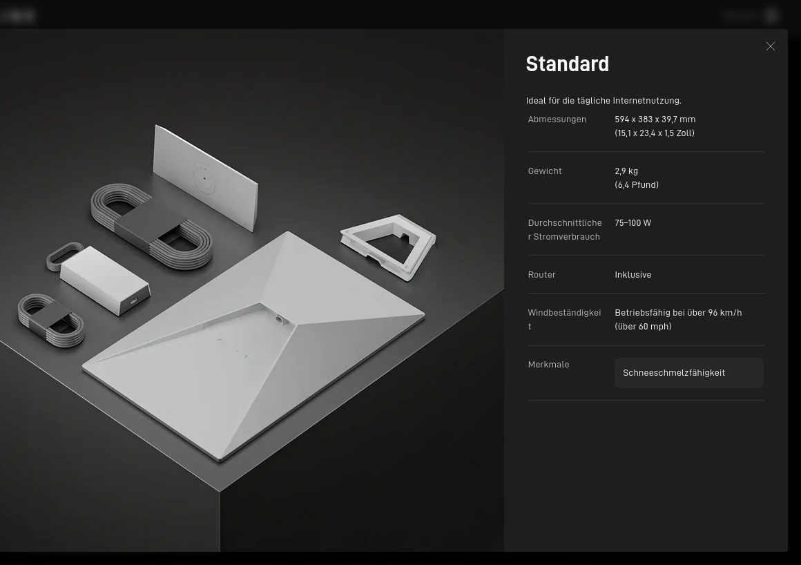 Bernd schaute gerade auf die Seite von Starlink. >75-100W Wat? Dauerhaft? Bernd, das ist doch sicher nur eine Heizung um Schnee und Eis zu entfernen? Oder? ODER? Ansonsten gibt es das für 29 oder 50 Euro im Monat.