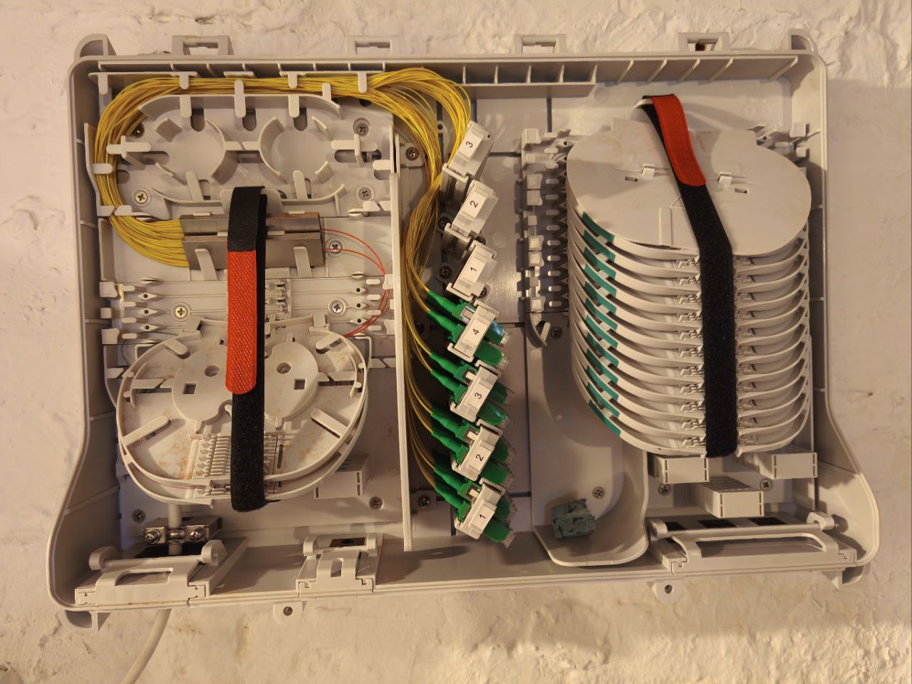 >>19973 Laß dich nicht trollieren. Das sind Spleißkasetten für Glasfaseranschlüsse. Inklusive zwei 1/32-Prismen. Scheint wohl für einen Plattenbau oder großen Wohnkomplex zu sein. Jedenfalls kann man damit 64 Wohnungen anschließen.