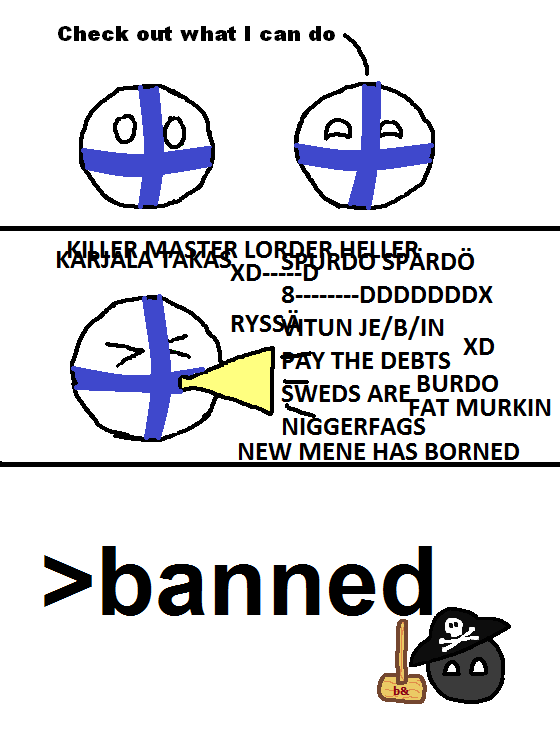 >>28418 Why so? If that happens, then Krautchan admins and mods are assburgers, not Finlandese. >>28437 Also Spurdo Spärde and jonne things do belong to /b/. Where is board culture thesedays?