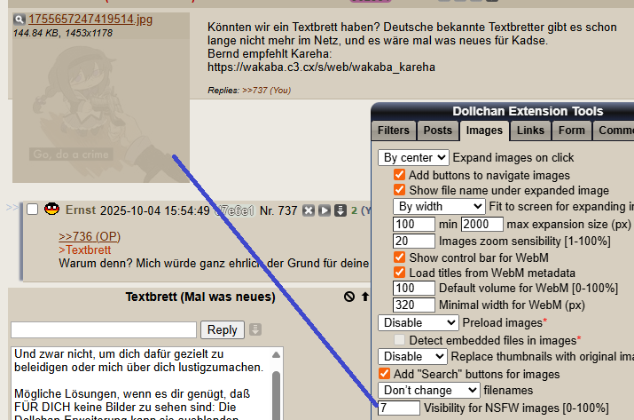 Könnten wir ein Textbrett haben? Deutsche bekannte Textbretter gibt es schon lange nicht mehr im Netz, und es wäre mal was neues für Kadse. Bernd empfehlt Kareha: https://wakaba.c3.cx/s/web/wakaba_kareha