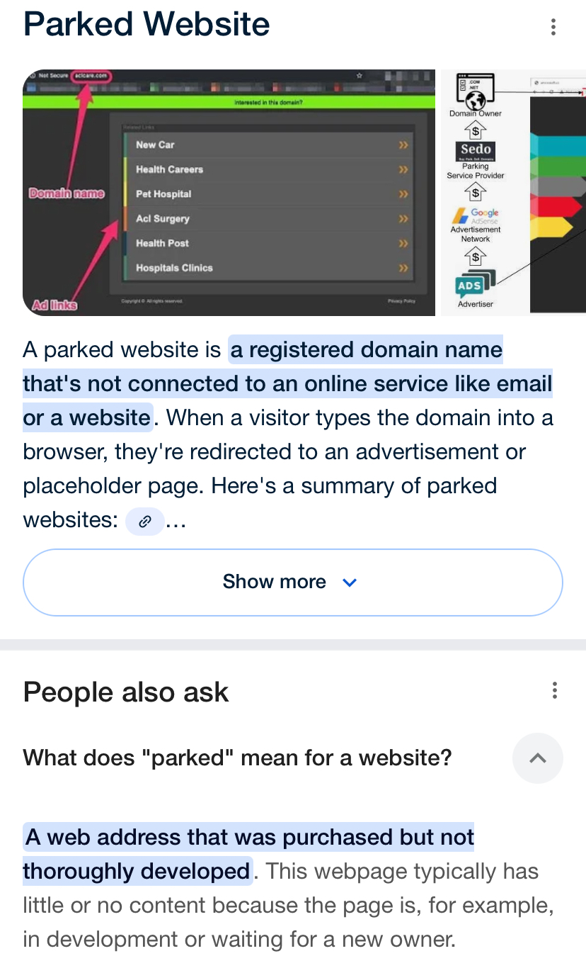 Die Website ist für einige meiner Geräte immer noch als "geparkt" gekennzeichnet. Gibt es eine Möglichkeit, dieses Problem zu beheben?