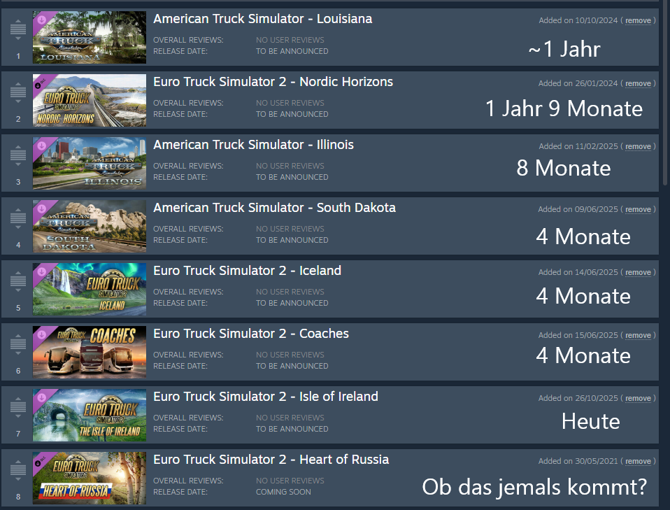 >Ja. Und ETS2 auf deutsch und metrisch wegen Immersion und so.
