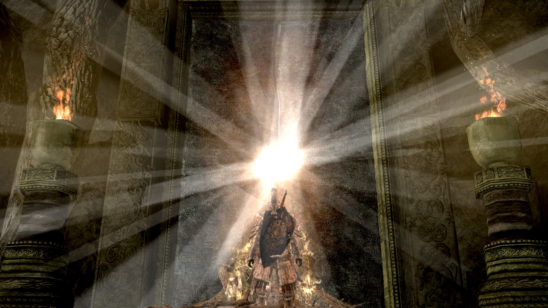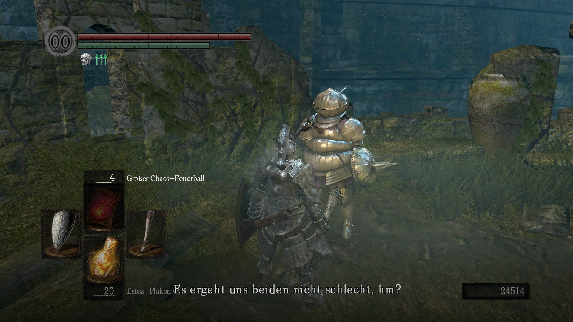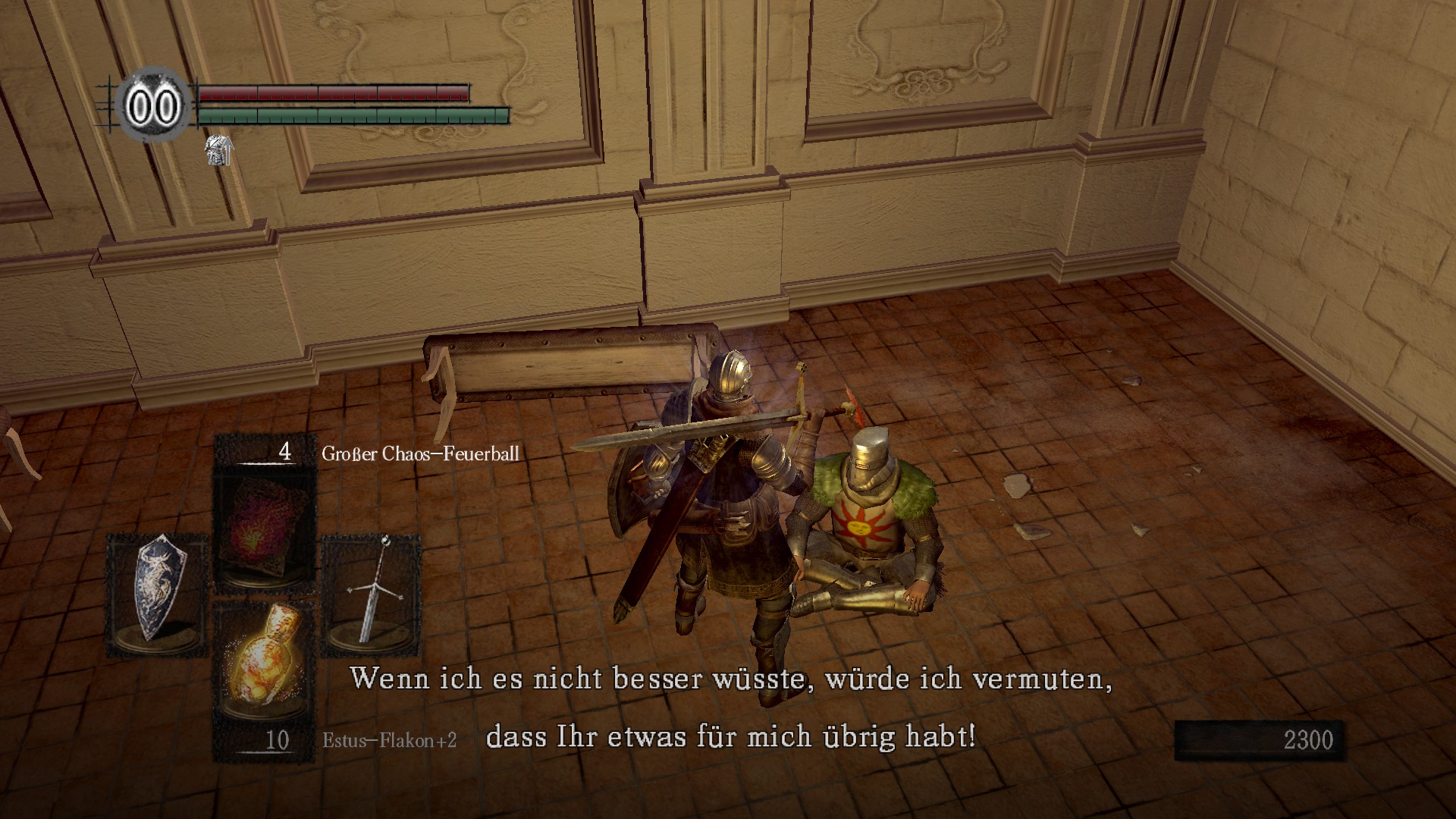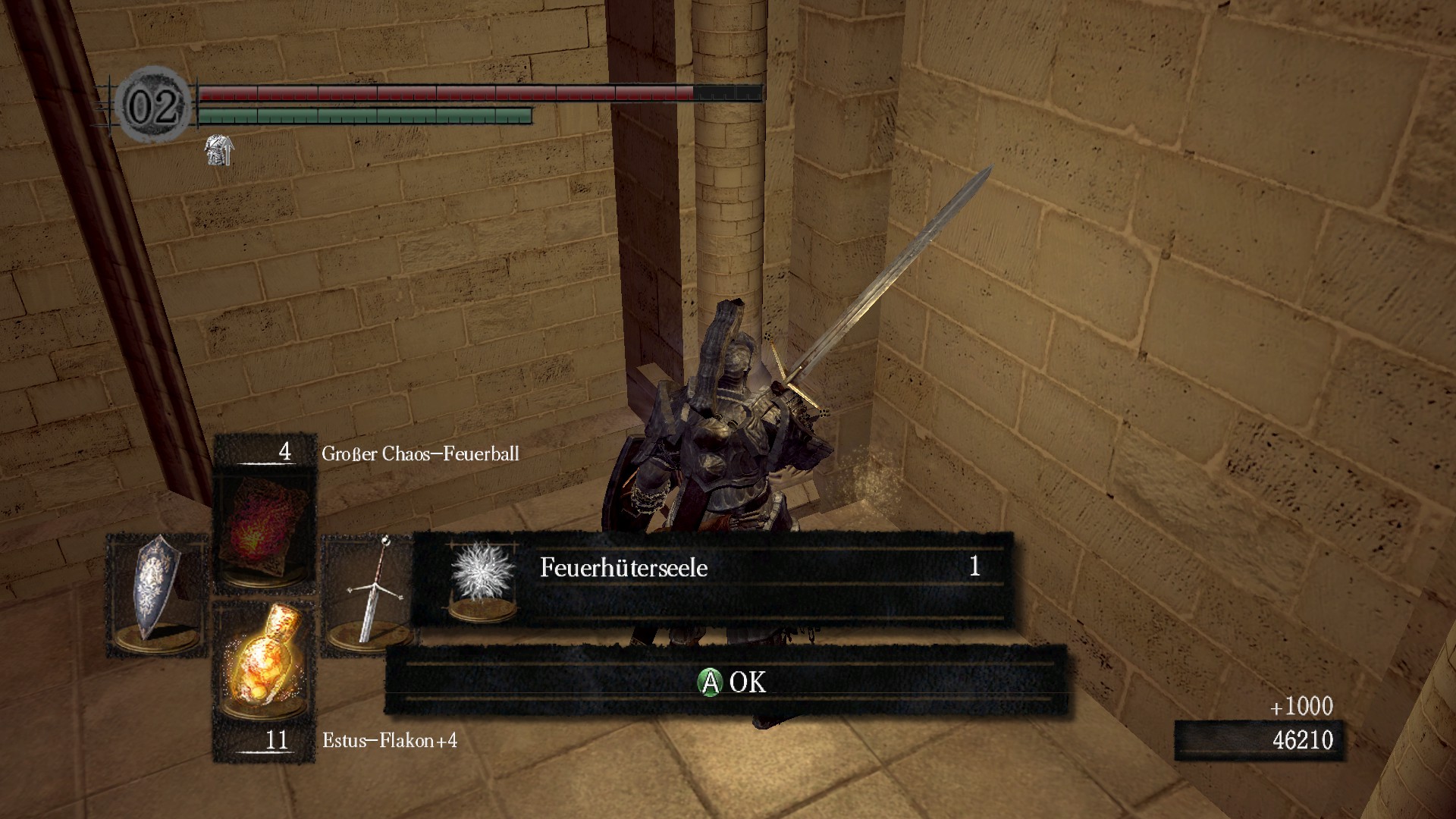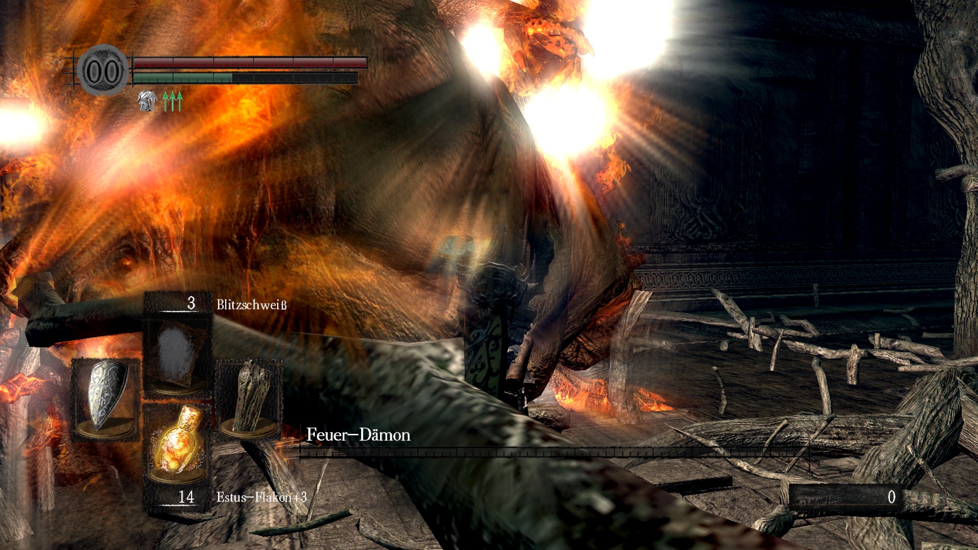 Bernd hatte jetzt einfach keinen Bock mehr, er wollte fertig sein. Das heißt Herrschergefäß gefüttert, Tür aufgemacht, den Gwyn beim ersten Versuch zum Verliryn gemacht - Keule regelt härter als sonstwas - und das Feuer entzündet. Jetzt hat Bernd im NG+ den Asyldämon in drei Schlägen gelegt und ist wieder am Feuerbandschrein. Wahrscheinlich wird er jetzt nochmal eine Pause machen und dann in fünf bis zehn Jahren weiterspielen.