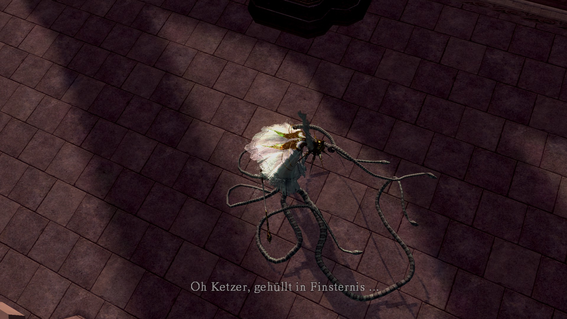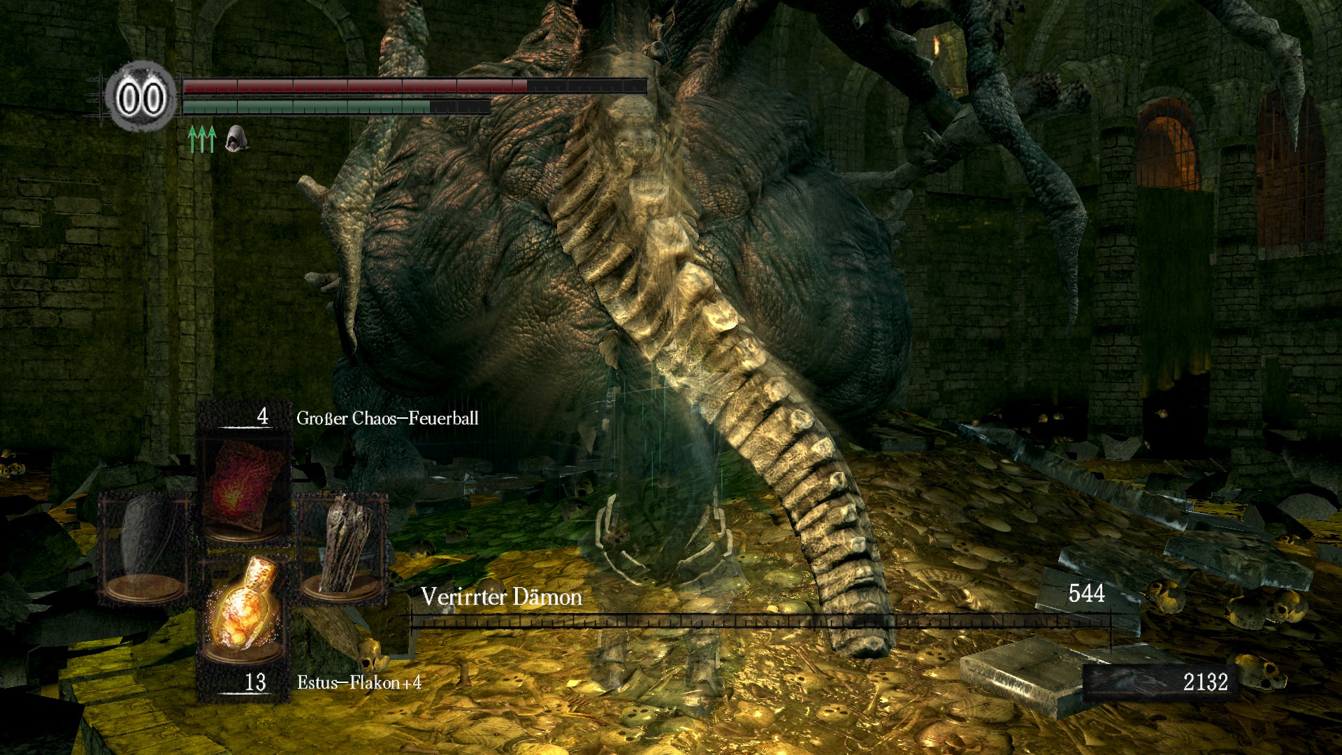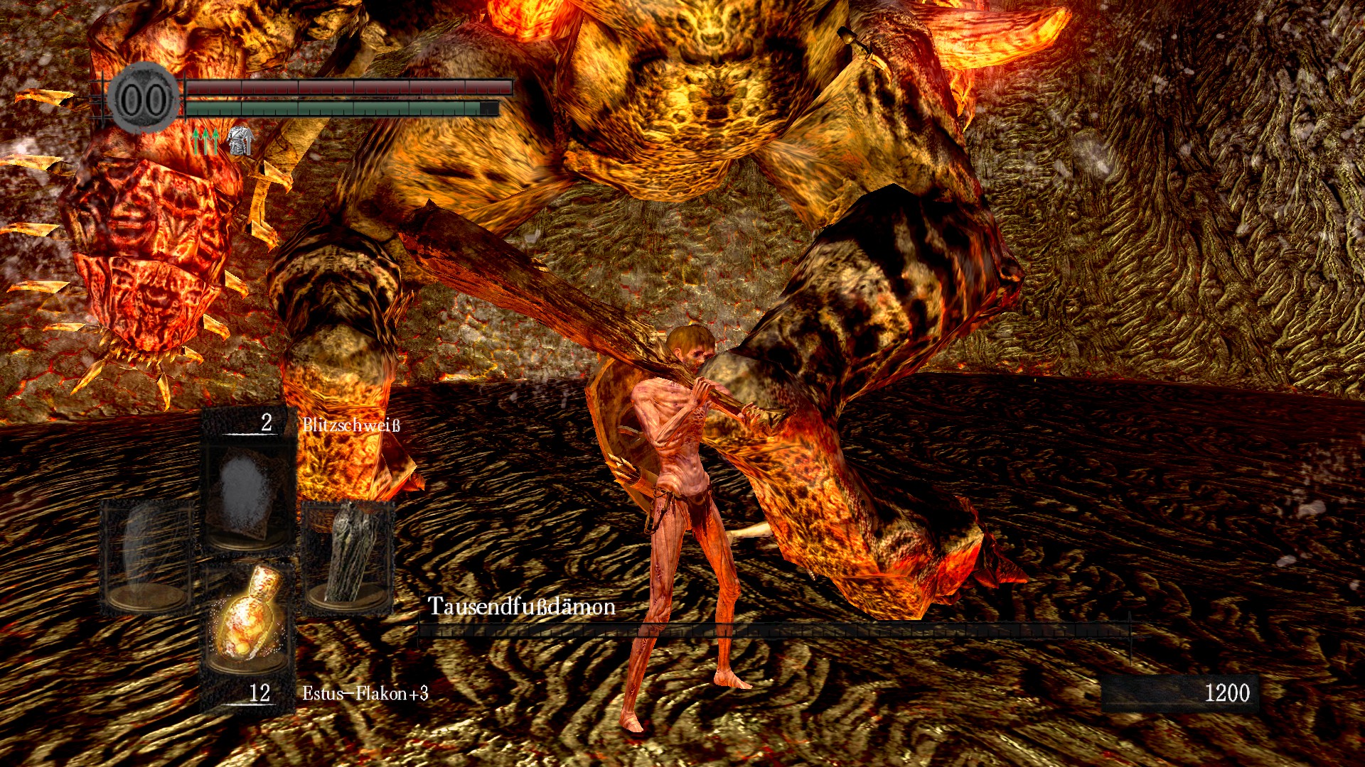 Der Tausendfußdämon (der doch nur zwei hatte) ist nun auch Geschichte. Schnellrollen + Keule + erstmal den scheiß Arm kaputtschlagen und er hatte außer wütend mit den Füßen zu stampfen wie ein kleines Arschlochkind nichts mehr zu melden. Als nächstes: Drachenärsche