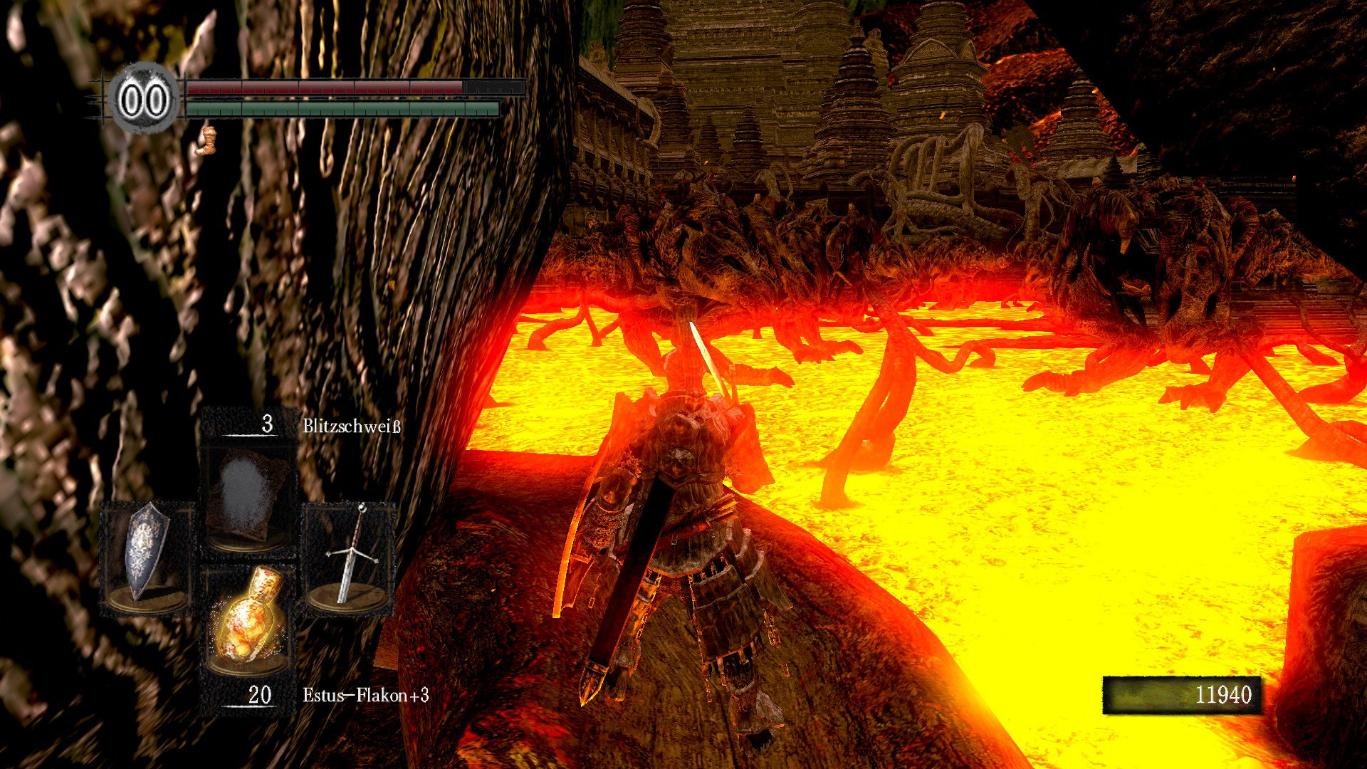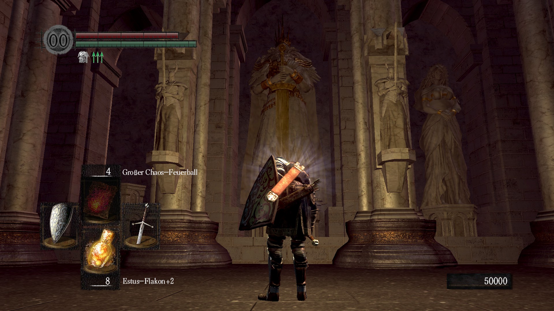 Opeh hier. Überleveln in Dark Souls ist völlig unnötig. Es kommt maßgeblich auf die Stufe deiner Waffe an und wie hart du getroffen wirst. Letzeres lässt sich durch Bewegung vermeiden (siehe Pfosten zu Dick & Doof). Was Bernd gegenüber seinem allerersten Durchlauf aber anders gemacht ist, dass er nicht mehr vorsichtig vorangeht, sondern hinrennt und draufschlägt. Und vor allem bei den Chef-Zurückrenns ist es völlig unnötig, nochmal alle Gegner totzuschlagen, weil du an den meisten einfach vorbeirennen kannst; durch den Nebel können sie dich nicht verfolgen. Deshalb hat Bernd auch diesen Durchlauf mit Level 90 oder so (höchstens) geschafft, während er damals irgendwie auf 120 oder so gemahlen hat, um den Artorias-Schild tragen zu können. Insgesamt nach dem was er von den Gutbekombern mitbekommen hat, levelst du STR und DEX nur bis du deine gewünschte Waffe tragen kannst und danach erstmal alles soweit wie geht in VIT+END.