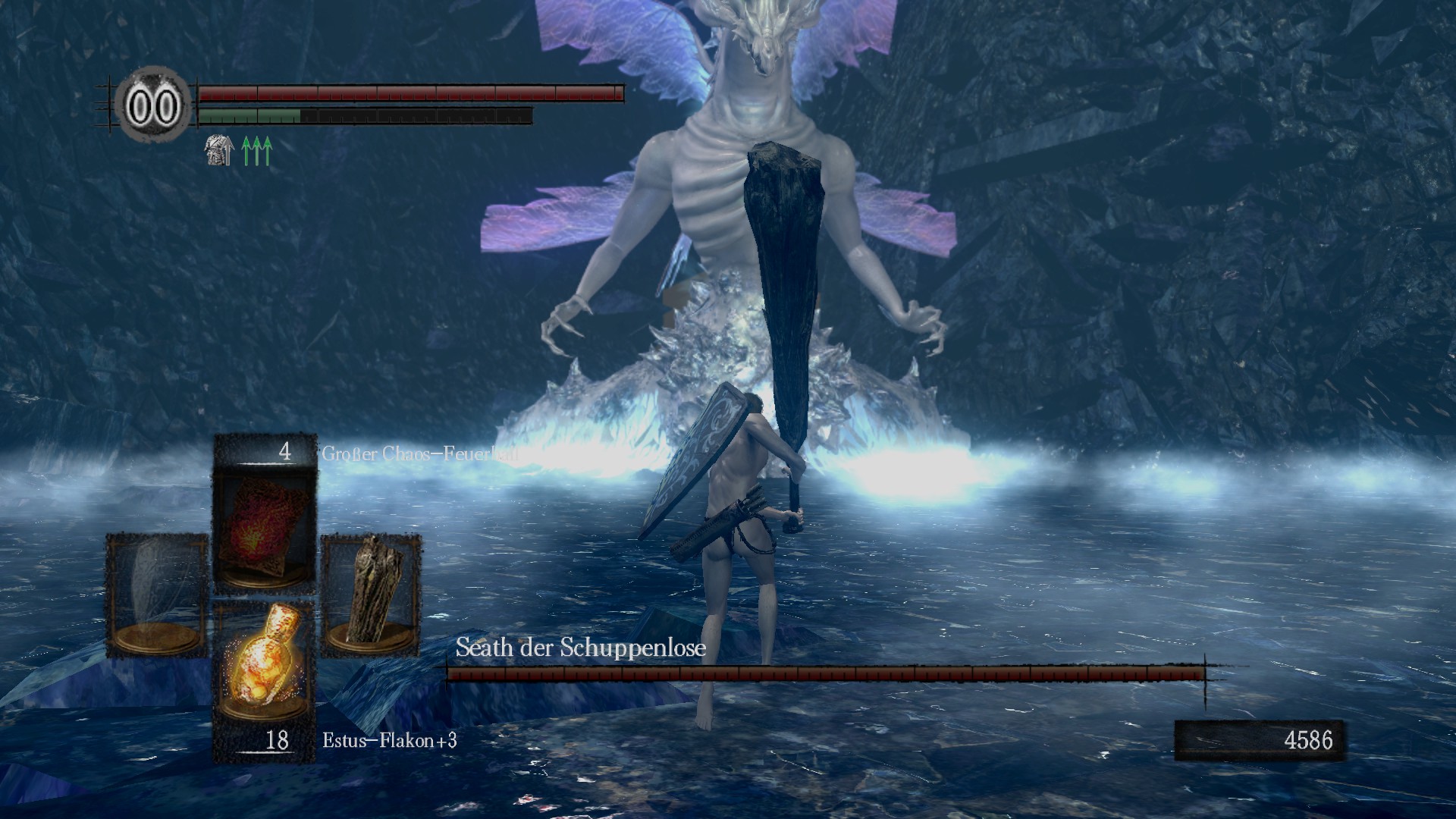Ernst ging zum Feuerbandschrein zurück um nochmal seine Waifu anzumachen, aber die war nur auf der Suche nach ihrem Vater. Leider hat Bernd dem in Izalith schon alle Eimerköppe weggemacht bevor er ihn ansprach und damit offenbar seine Story beendet, und damit wird Bernd aug seine Sieglinde nie mehr sehen ;_; Darum ging es dann mal nach Oolacile, wo die Chimäre erlegt und ein komischer schwarzer Drache auf einer Brücke beobachtet wurde. Ob das wohl ein Boss ist, der da unten in der Schlucht haust? Schalten Sie morgen (oder im Laufe der Woche) ein, um mehr zu erfahren! Danach ging es zum Artorias, der Bernd aber direkt in Grund und Boden stampfte. Jetzt muss Bernd auch mal ein bisschen überlegen, denn selbst mit seiner Riesenkeule machte er nur irgendwelchen lächerlichen Schaden.