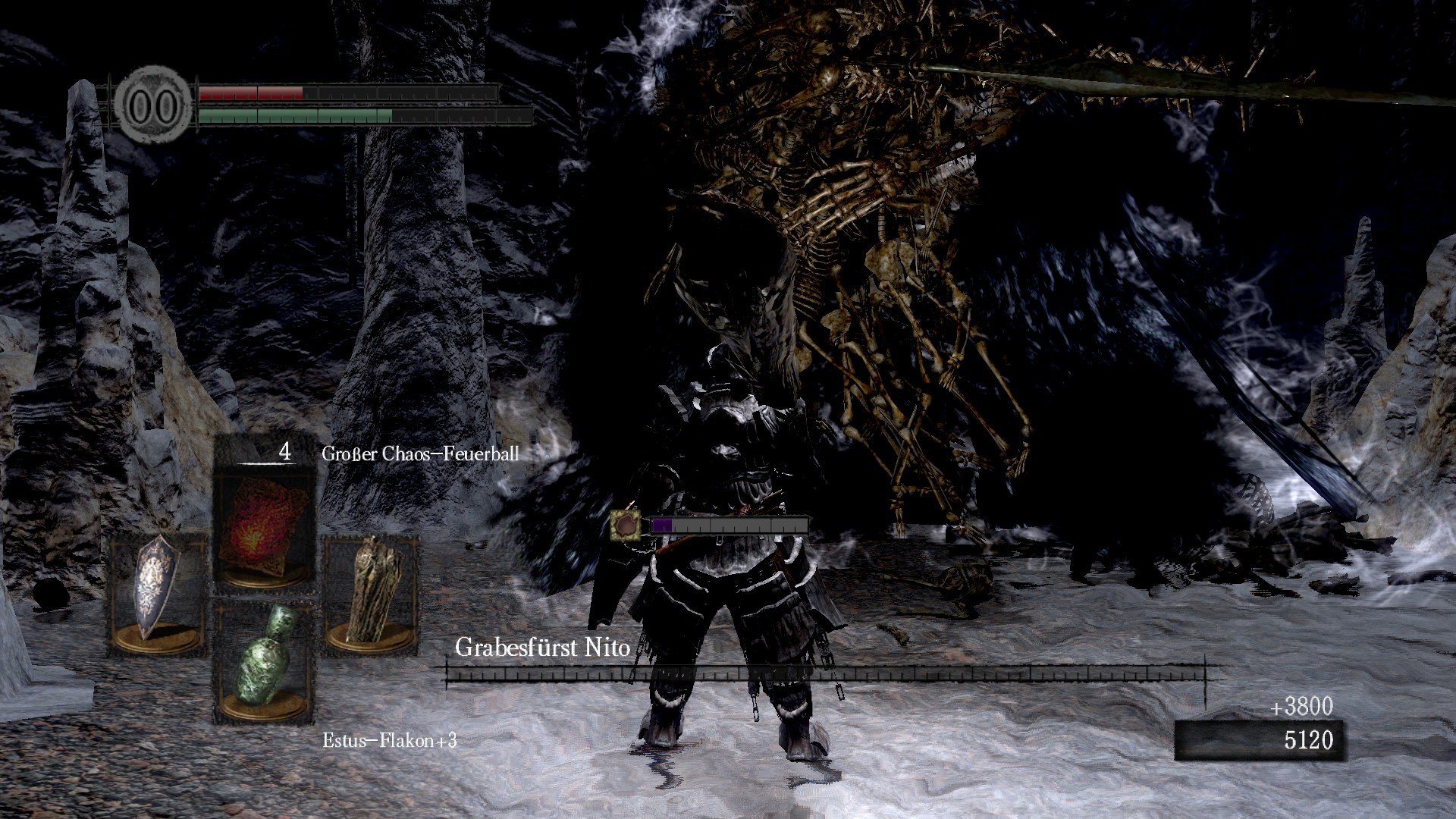 Heute waren die Gräber dran. Bernd hasst die ganze Katakombenscheiße, deswegen hat er auch so schnell wie möglich den Pinwheel umgelegt. Hat gerade mal drei Schläge mit der großen Keule gebraucht. Eigentlich eine Frechheit, dass dieser Mongo"""boss""" die am gefährlichsten klingende Bossmusik hat. Danach in den Riesenkatakomben durchgerannt. Dabei Blitzzurücks zum ersten Durchspiel, wie er vorsichtig jeden Gegner aus der Ferne erledigte und ewig für die Pinwheels vorm Bossraum brauchte. Heute einfach durchgerannt. Beim ersten Mal noch alle Pinwheels weggebuxxt, dabei leider vergiftet worden und ohne Moos nix los. Dennoch runtergrsprungen und inmitten der ganzen Skelette noch den Neeto angegangen, war aber leider nicht genug. Beim zweiten Versuch dann aber einfach durch ohne sich um das Kroppzeug zu kümmern und den Nieto umgenietet mit seiner ganzen Baggage. Dabei war das echt knapp, weil Bernd natürlich das Feuer nicht entfacht hat und mit nur fünf Estus da rein ist. Natürlich etwas nachteilig, wenn man gesichtspanzern will. Naja, ging doch, und jetzt versucht Bernd sich gerade am Ewigen Ausfluss, aber explizit ohne Käsen (bis es ihm da auch zu behindert wird). Das Vieh ist einfach zu groß und der Bildausschnitt zu klein als dass Bernd sehen kann, wo jetzt der Arm runterkommt. Dabei leider unglücklich von einem Doppelwatschn erwischt worden, sonst hätte es vielleicht sogar klappen können.