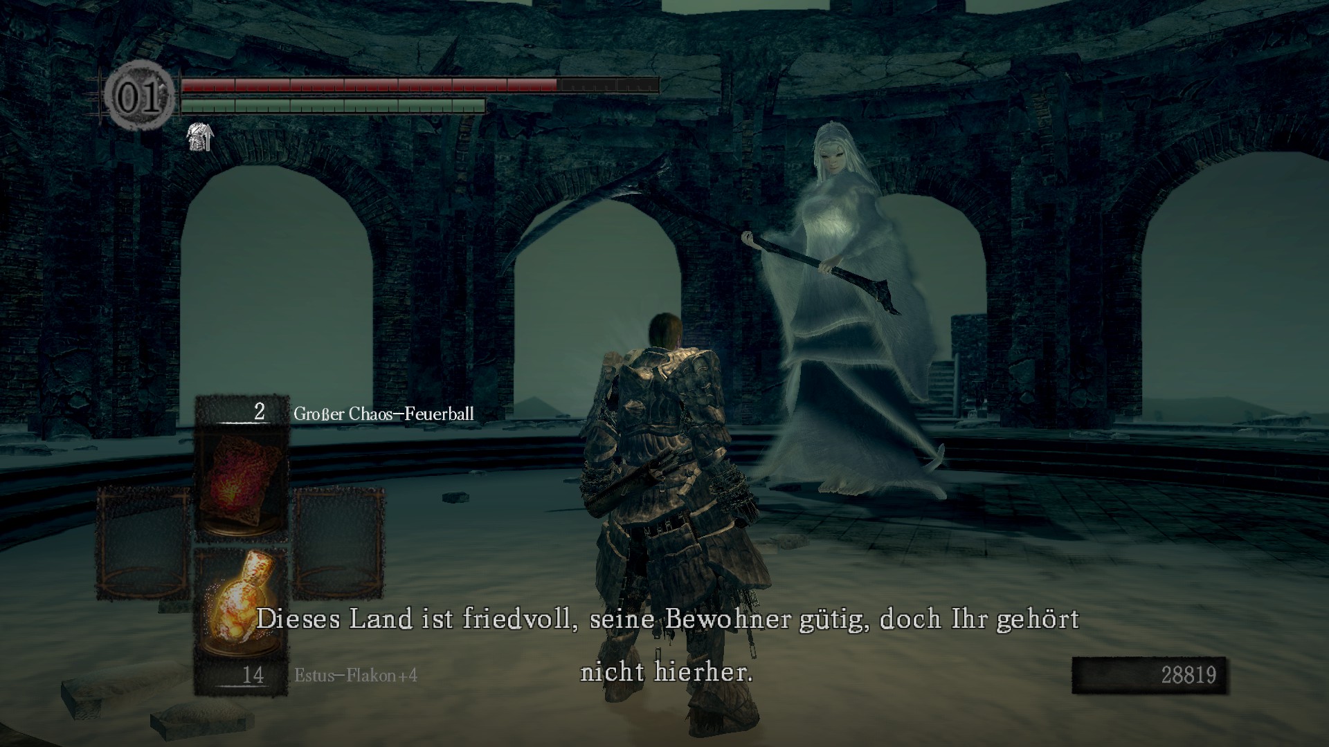 Bernd hat gestern und heute ein bisschen Seelen geerntet weil er die ganzen Sachen bei den Händlern kaufen will, aber der Scheiß dauert ewig. Dafür hat Bernd jetzt aber auch vier graue Schollen. Rickert von Vinheim ist jetzt auch auf dem Weg in die Herzogsarchive und Petrus von Thorolund durfte jetzt auch mal seinen Mord an Rhea büßen. Damit ist der Feuerbandschrein entvölkert. Bernd braucht jetzt rund 80k Seelen, um die Artoriasrüstung zu kaufen. Danach gibt es noch diverse andere Sachen zu kaufen, aber Bernd hat da eigentlich keinen Bock drauf. Eigentlich braucht er die ganzen Rüstungen ja auch nicht. Wenn er aber doch nochmal scharf drauf ist, muss er bis zum nächsten Durchlauf warten, der vielleicht nicht existieren wird. Tja, aber so ist das halt als auserwählter Untoter. Es ist kein leichtes Leben und jede Sekunde gibt es ein neues Dilemma zu bewältigen. Weint nicht um mich, ich bin schon lange tot.